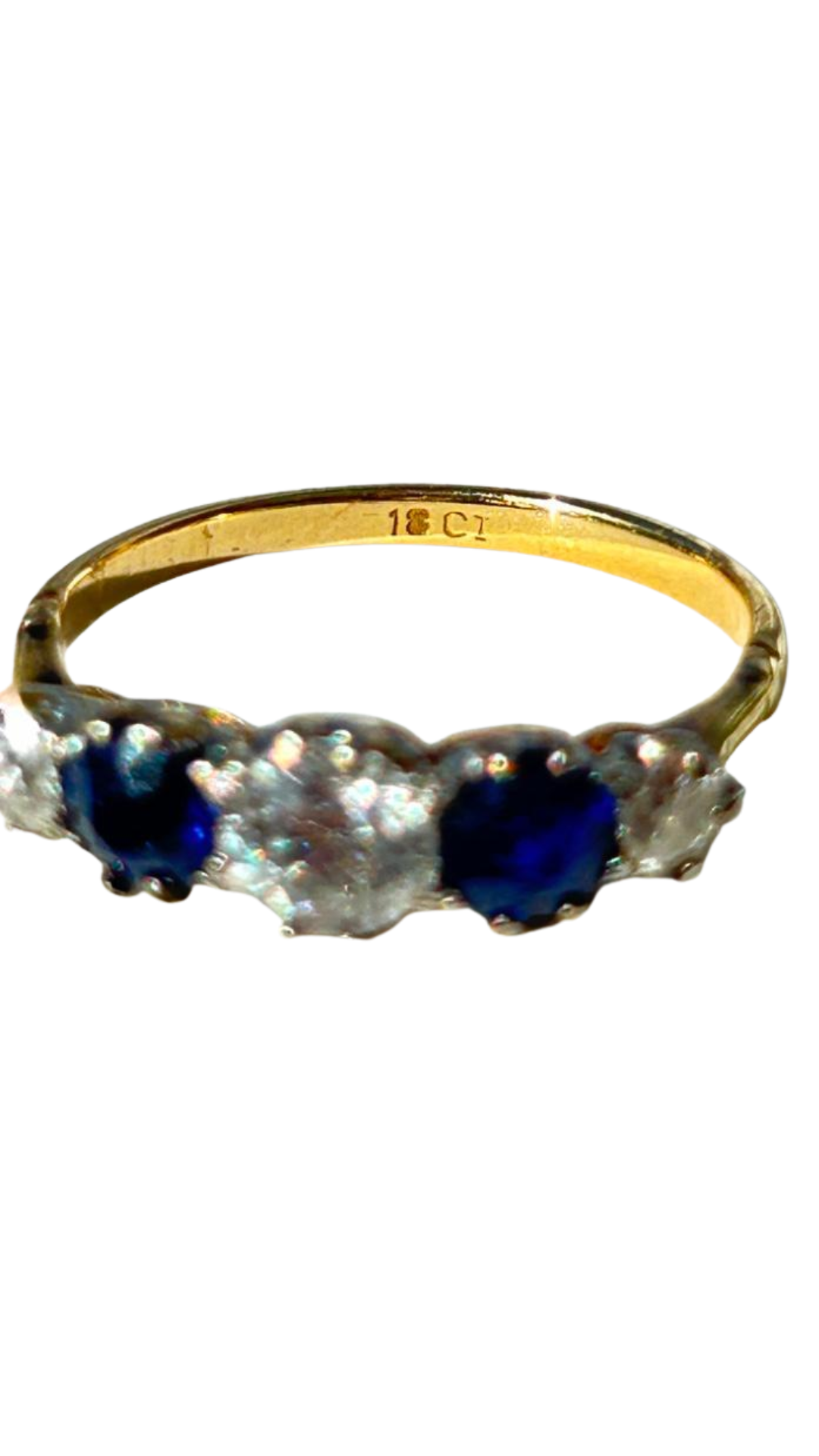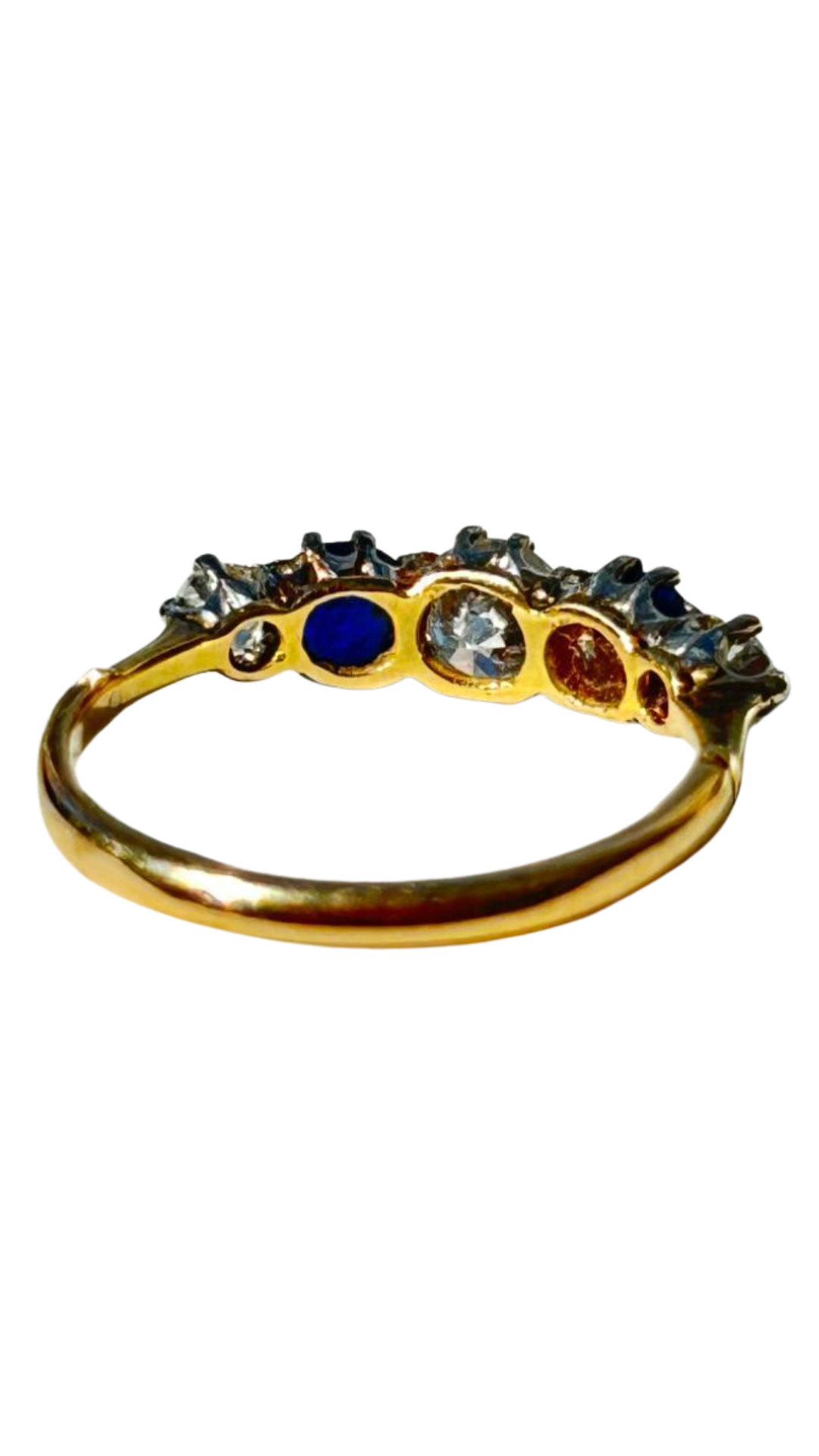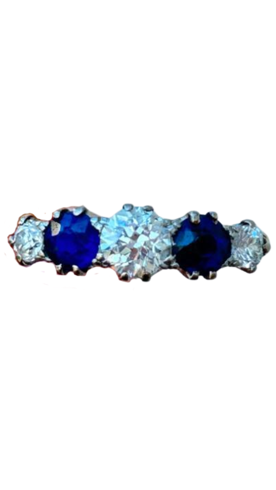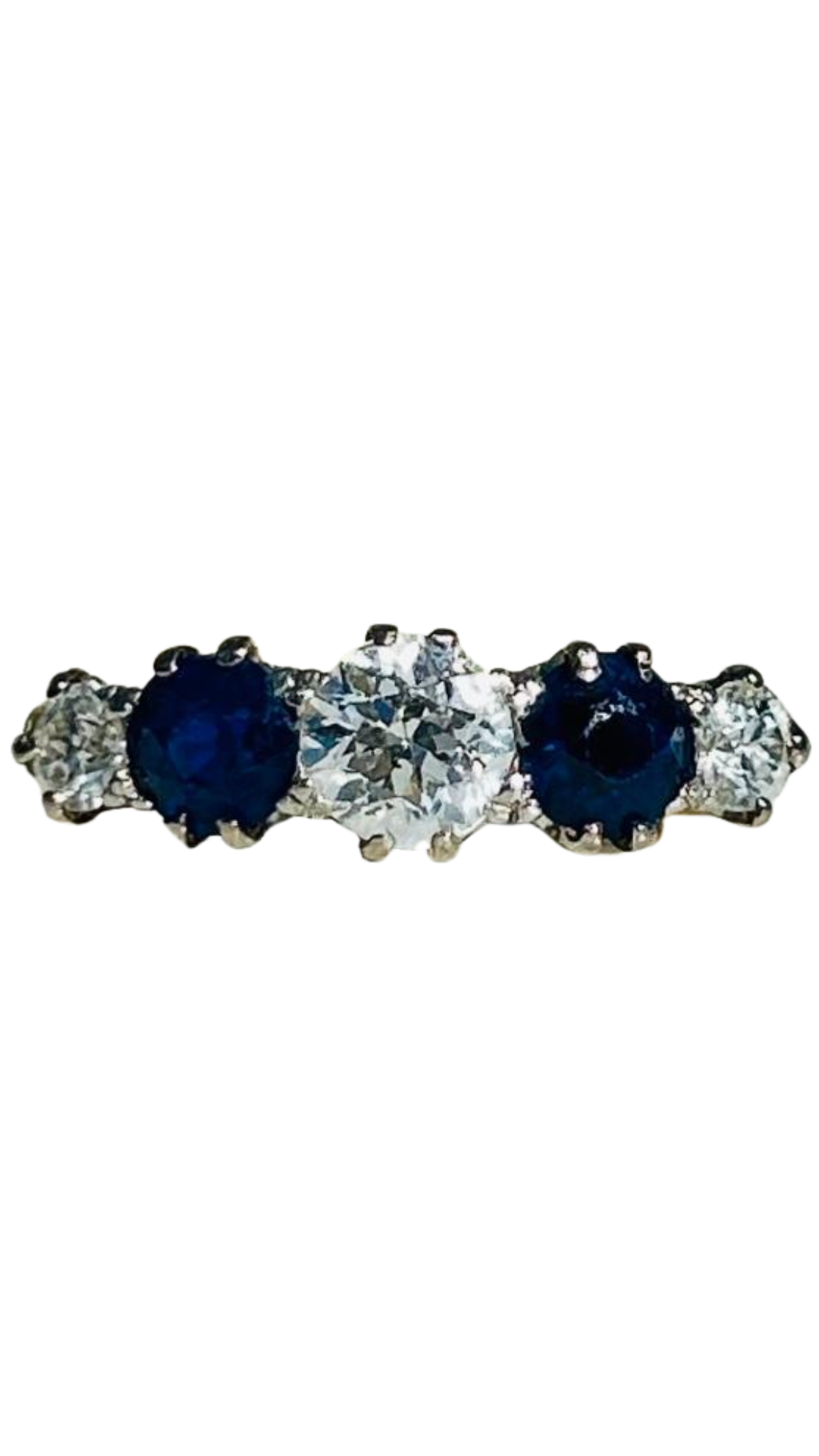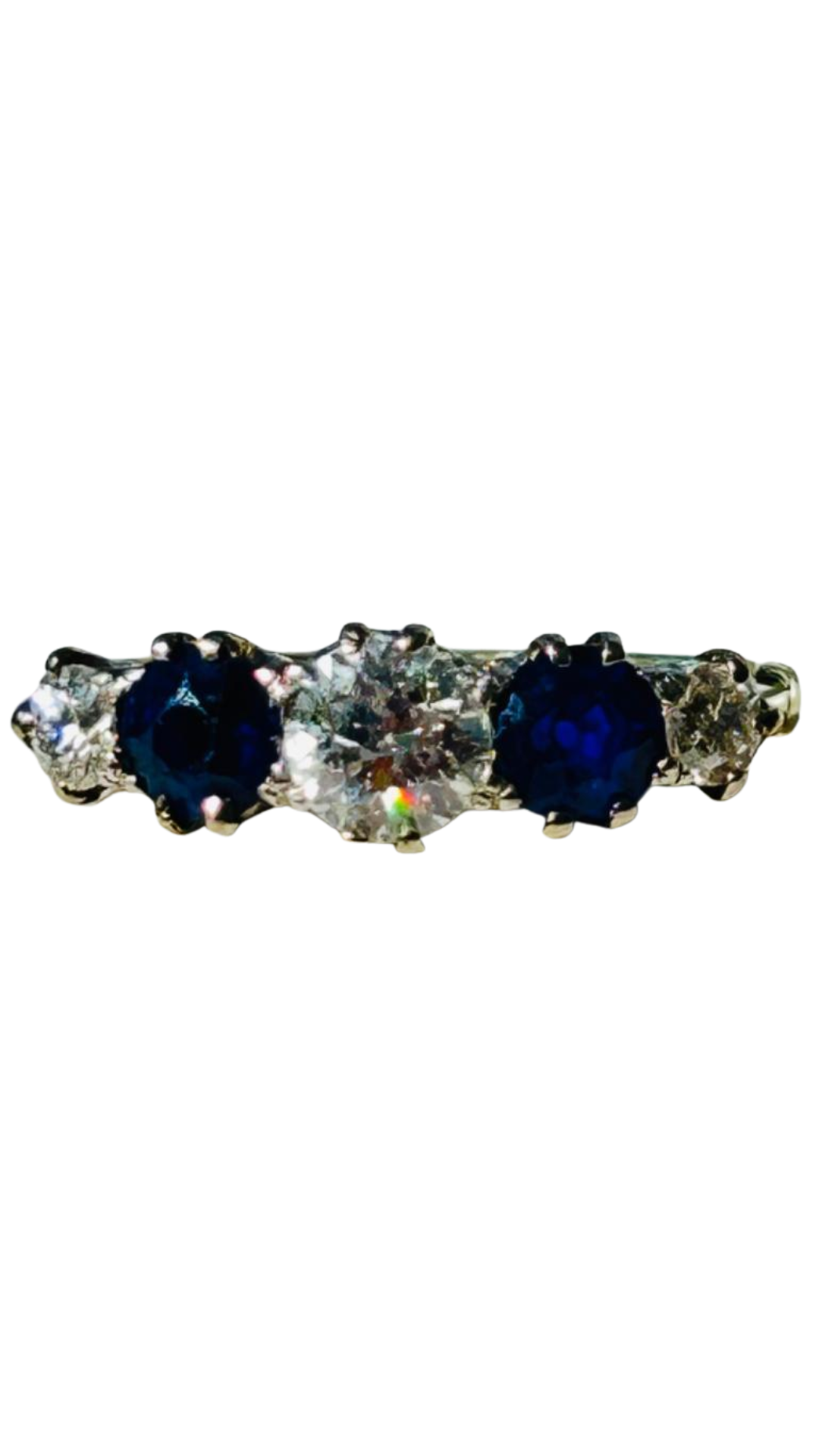 Art Deco Sapphire and Diamond 18 Carat Gold Five-Stone Ring