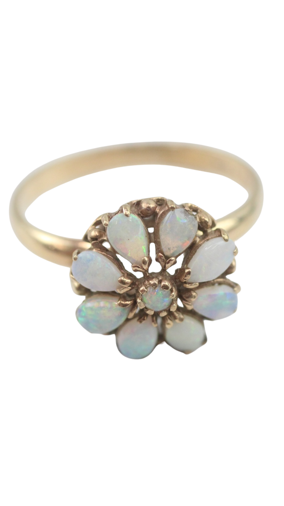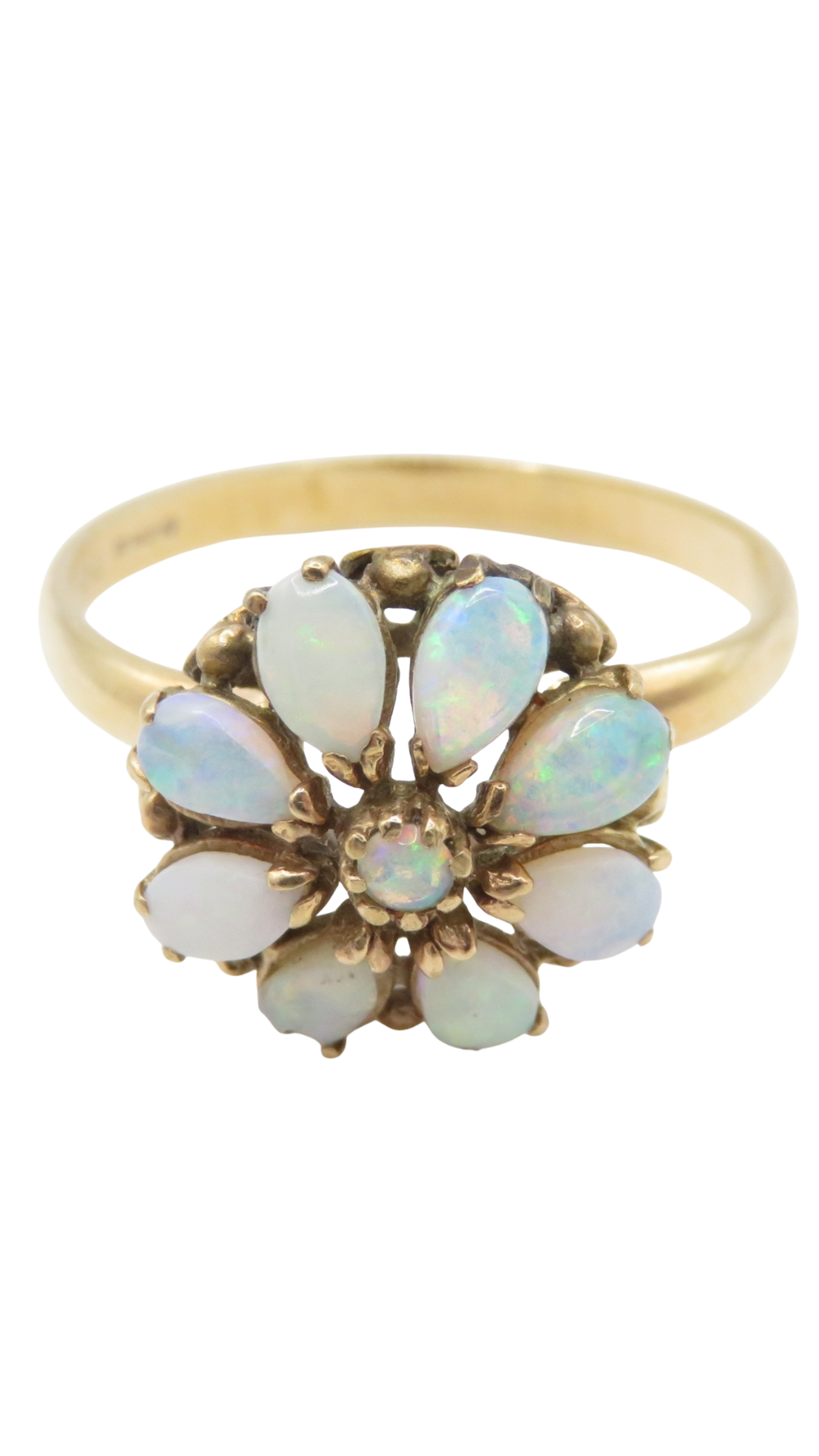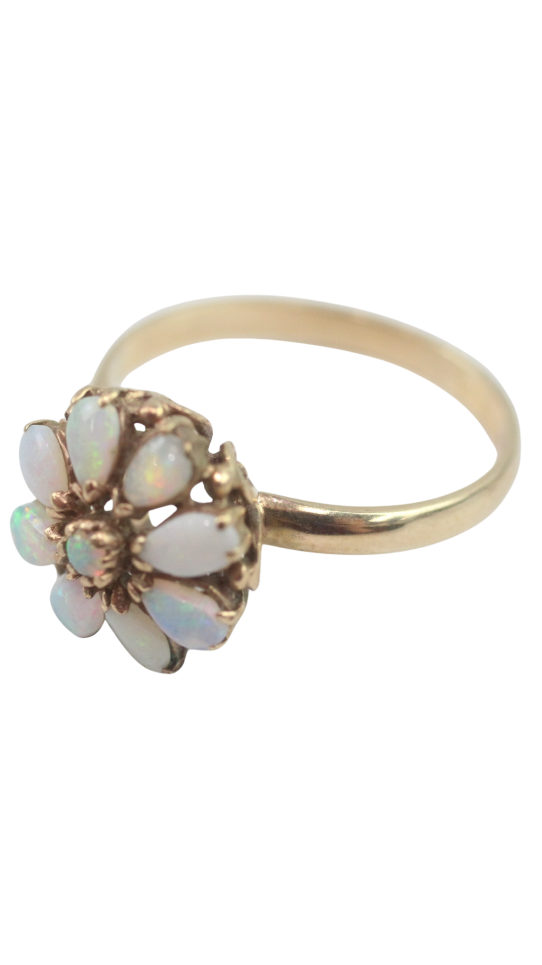 9ct gold opal cluster ring (3.4g) Size 9.5