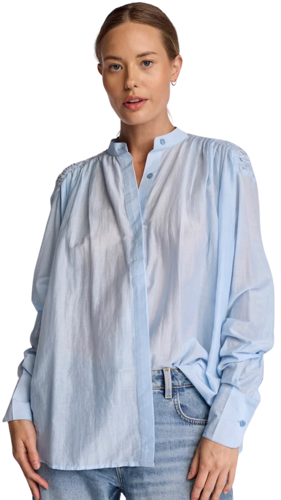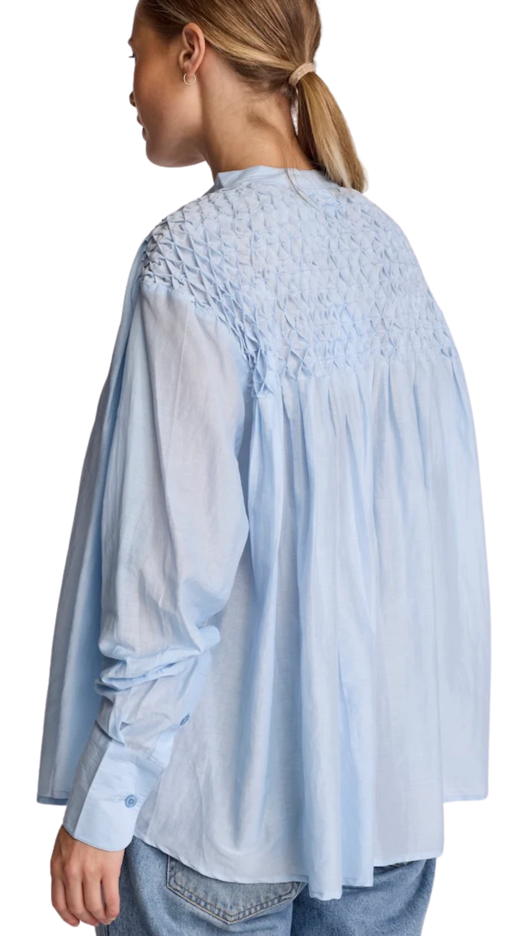 The back placket features a diamond pin tuck, adding a touch of refinement that takes this beyond your average button-up. Crafted from our luxurious cotton-silk blend, it offers a light, breathable feel while exuding effortless elegance.