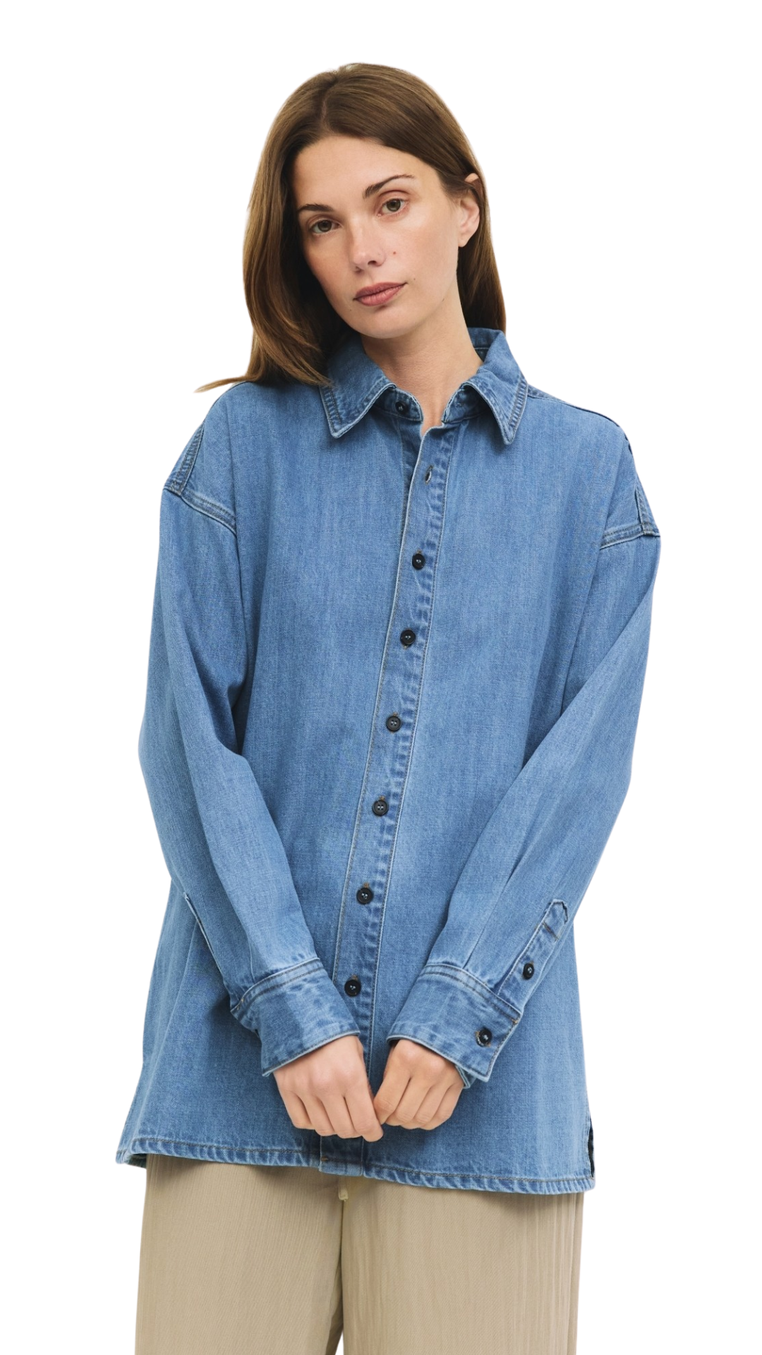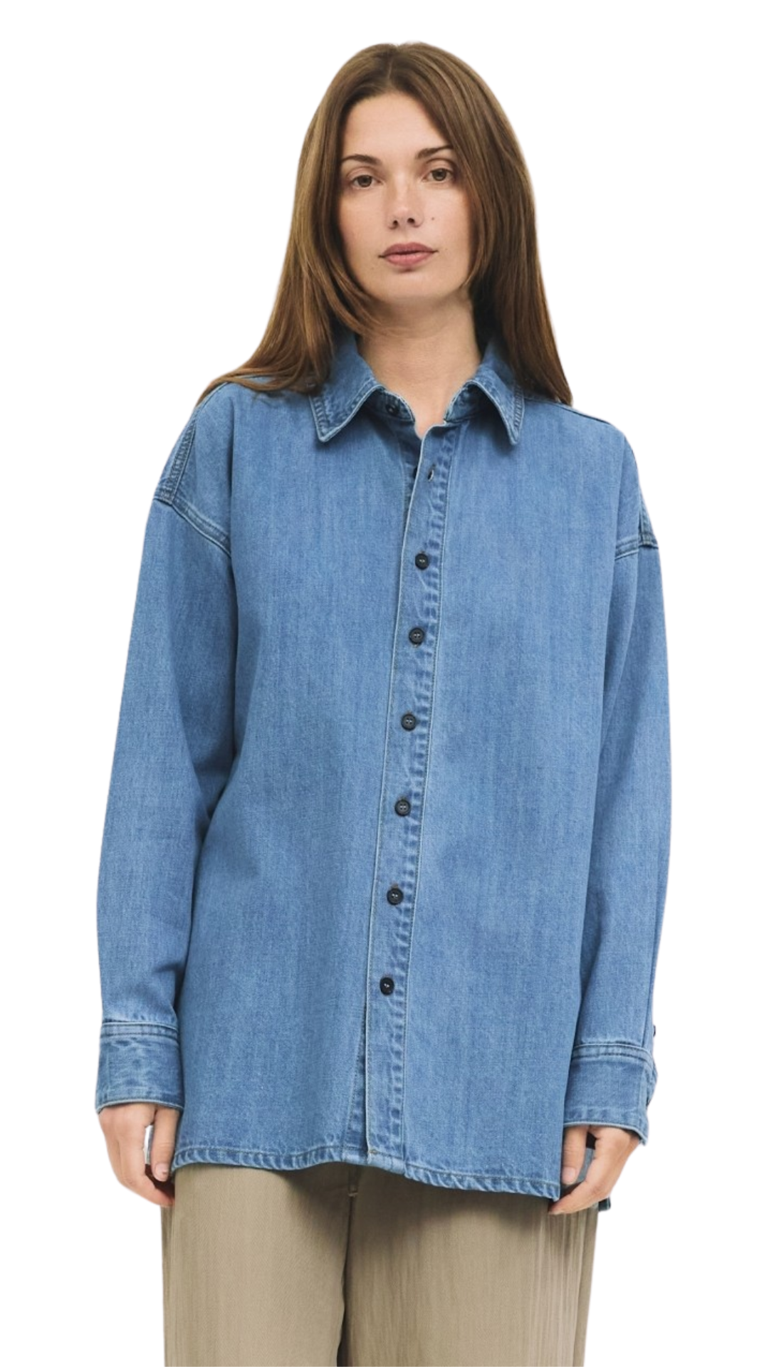The Artie Top is our take on the classic denim shacket. Featuring an oversized fit, back yolk detail and contrast buttons, this piece is crafted from a soft, durable cotton fabric. Your new favorite go-to piece for a casual day out.