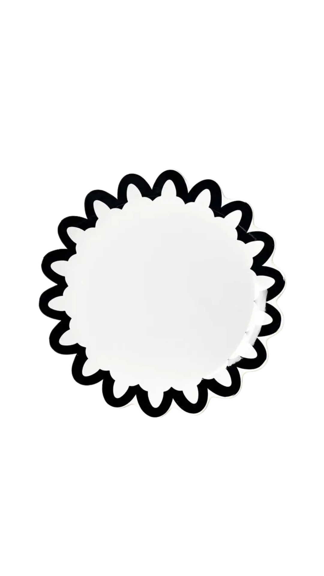 Give your tablescape a stylish update with our Arabesque Black Scallop Edge Platter. This curvy platter offers traditional with a twist, pairing negative space with a repeated pattern of connecting Arabesque shapes to achieve the finished design. The scoop scallop edge instantly elevates this ceramic platter to a curvy essential in serveware or a stunning display of home décor when not in use. This thoughtfully designed pattern offers a giftable shape that is effortless to share and highly desirable to keep. This 13.3-inch diameter Stoneware platter is dishwasher safe and microwave safe.