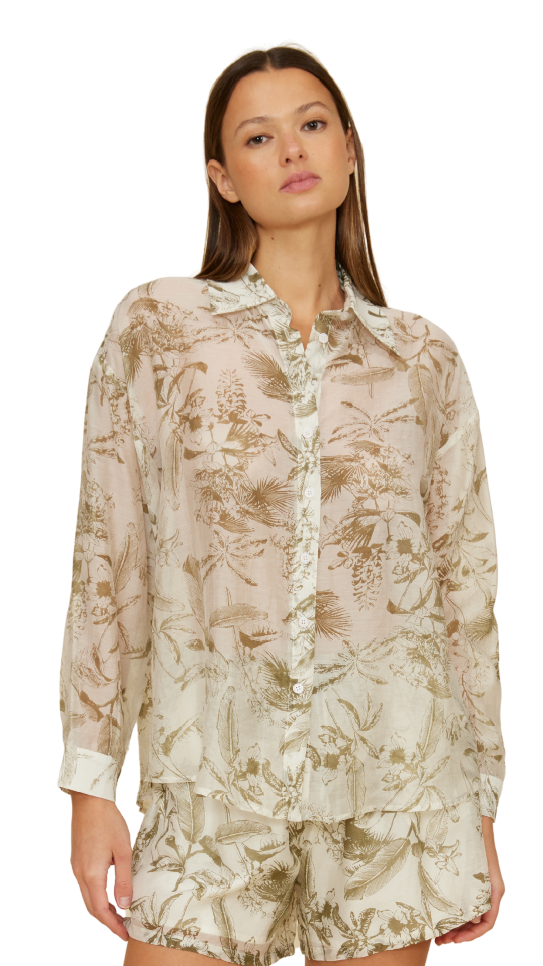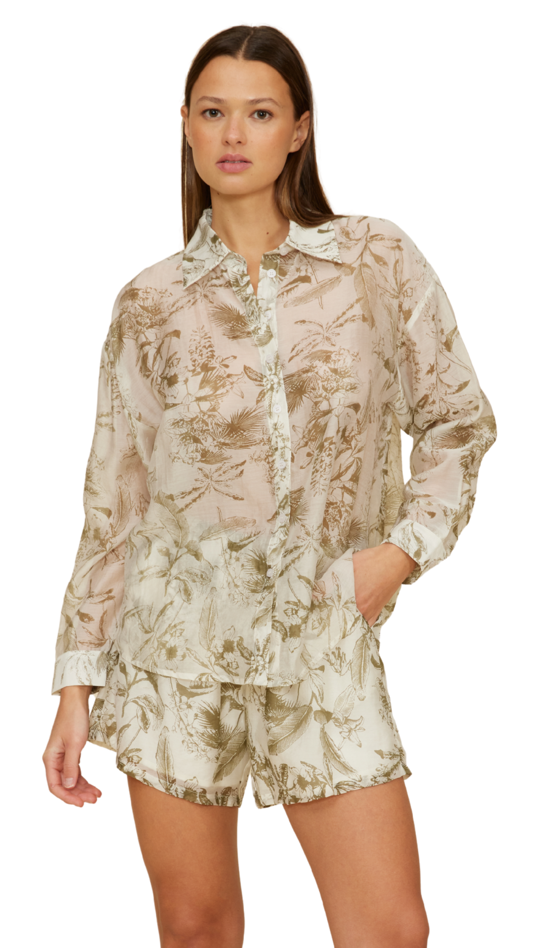 Ivory and Olive Toile Print. Match with the Lou Shorts