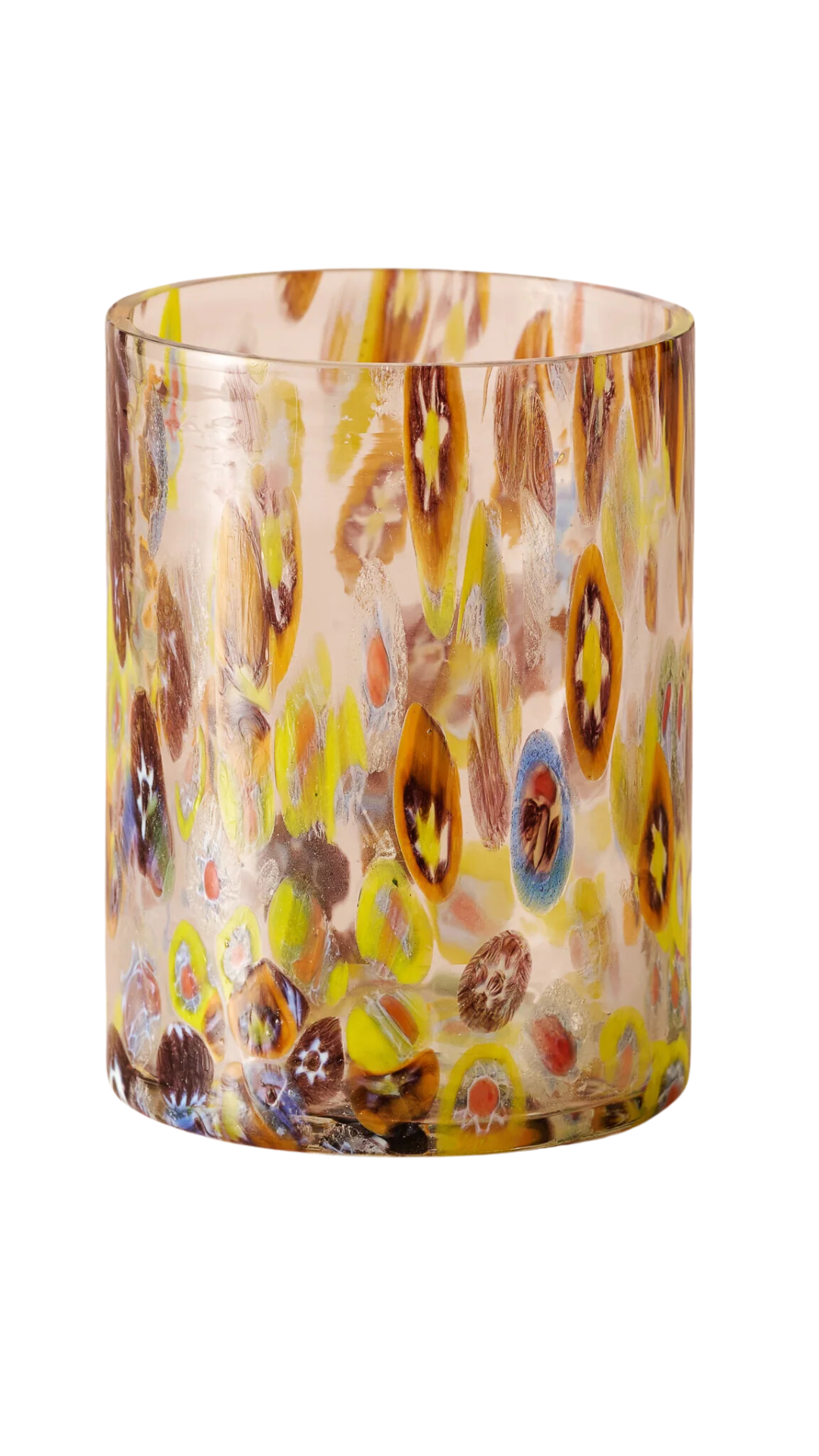 Brighten up your drinkware with the Confetti Cheena Glass Tumbler! Hand-blown using the unique Cheena technique, these glasses feature a playful spotted effect in an array of colors. Perfect for your kitchen, these round glasses are handcrafted by artisans with TARA Projects in India. Handwash.