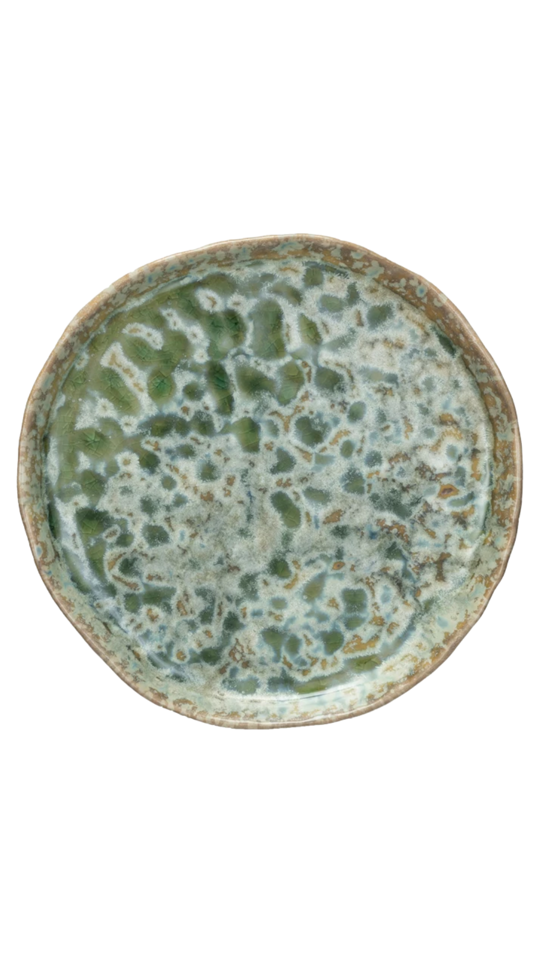 6" Round Stoneware Plate, Reactive Crackle Glaze, Green (Each One Will Vary)