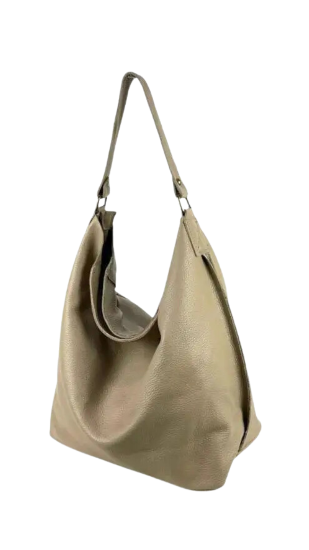 Hobo leather bag for women with large capacity, zip closure and internal pocket. Material: Leather. Main Closure: Zipper. Interior: Lined. Large Capacity. Comes with a side pocket with zip closure Dimensions (L x W x H): 48 x 15 x 34 cm. Base: Flat. Made in Italy