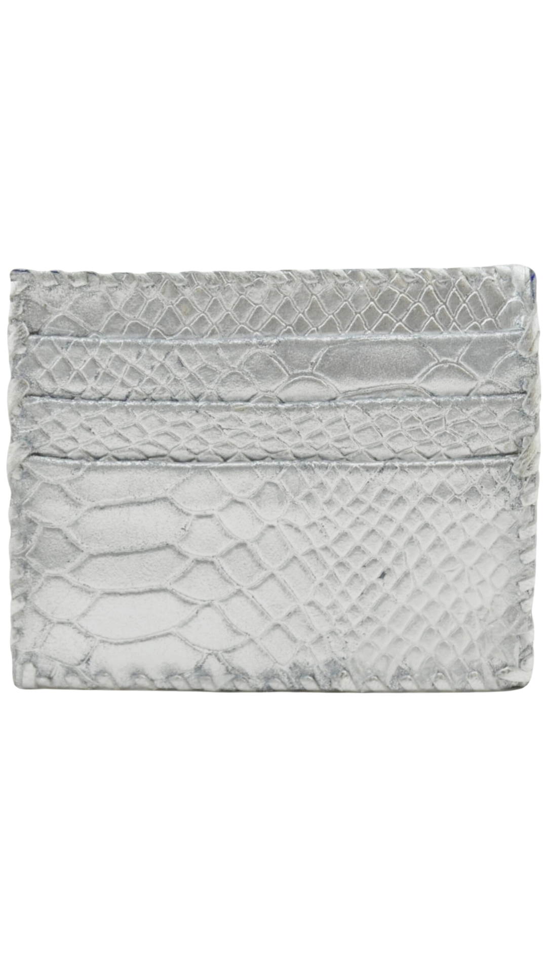 Artisan Handmade credit cardholder. Made with embossed leather. Handstitched using leather strips creating beautiful whipstitch detailing. Double-sided. Card Holder. 6 credit card slots. Size: 3.5"x4.25". Made in India