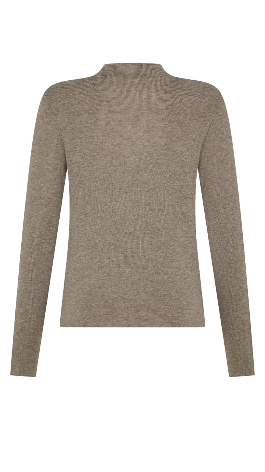 59% polyester, 26% viscose, 14% wool, 1% elastane. A wonderful high neck sweater that will serve as a great basic in your closet all summer long.