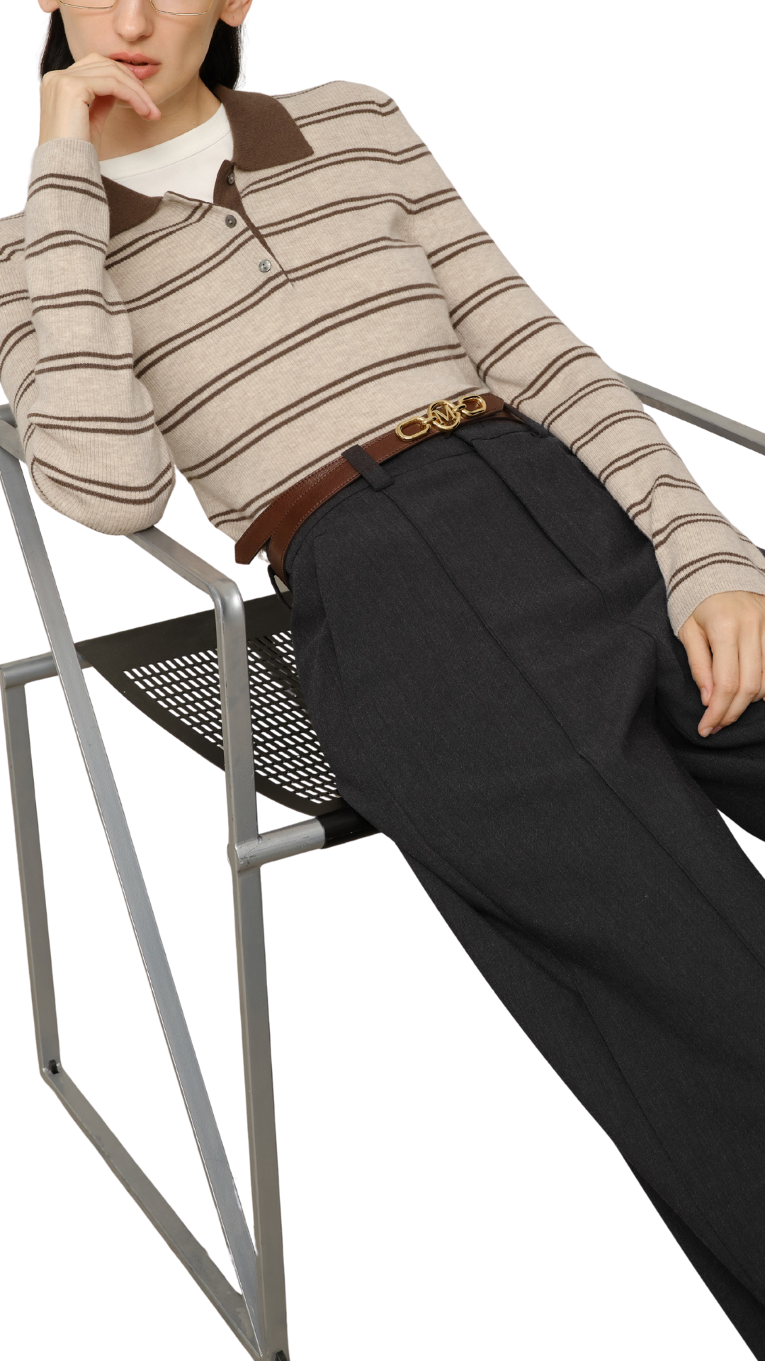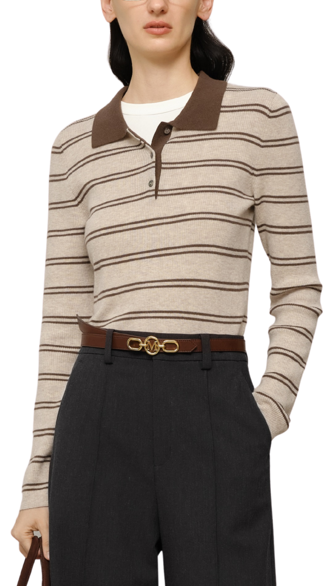 Khaki Stripe Polo Sweater