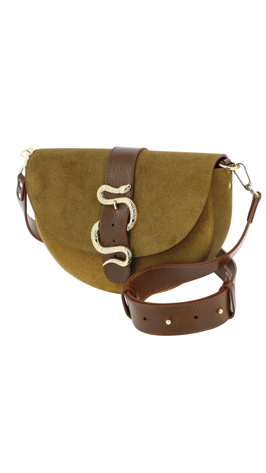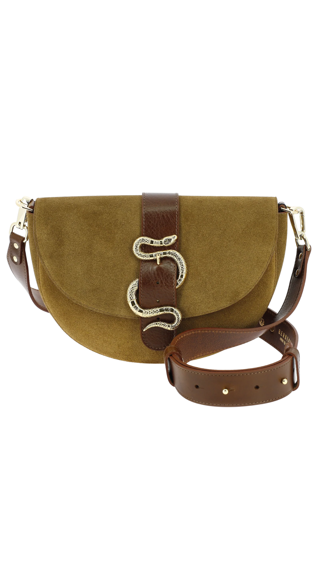 Flap with magnetic snap and decorative snake buckle in Zamak