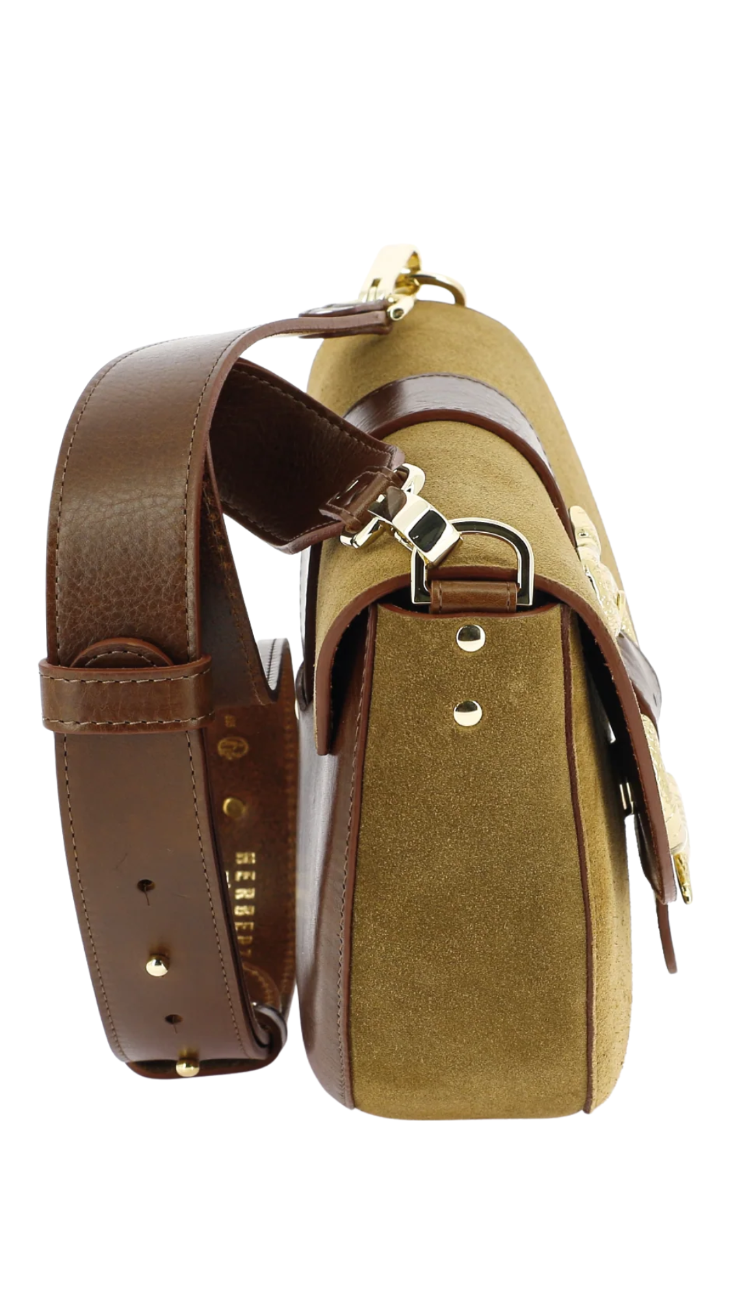 Handle and closure tab in full-grain Nutella vegetable-tanned cowhide leather