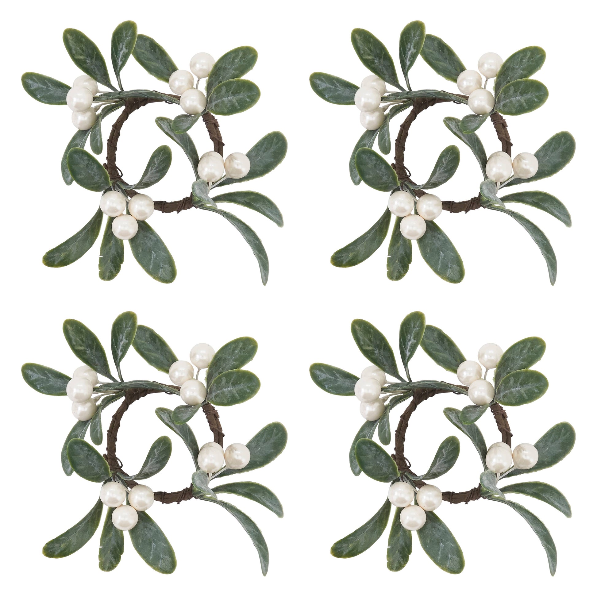 Decorate your holiday table with these adorable Mistletoe Design Napkin Rings. Timeless and festive, these napkin rings also bring a natural look and feel to your table. The white and green color combination makes it easy to pair with a wide range of holiday table décor.