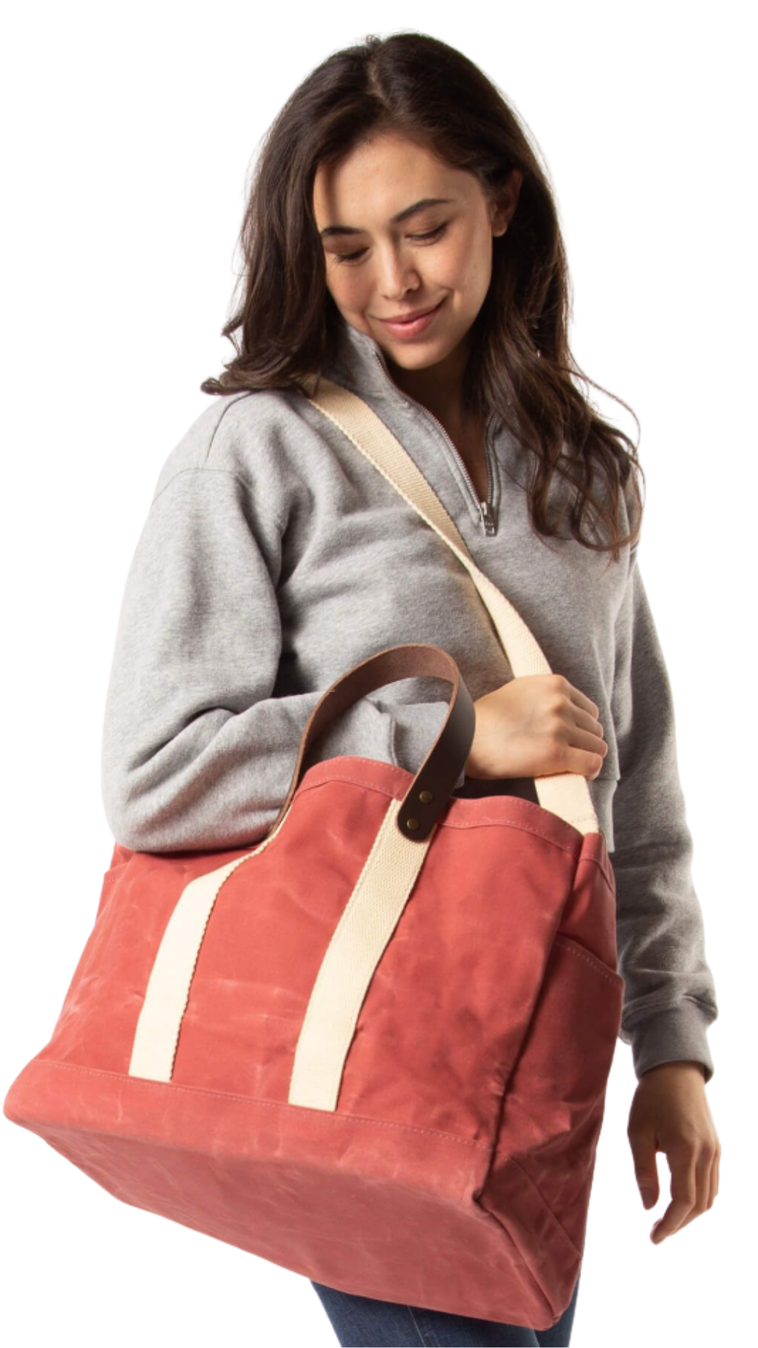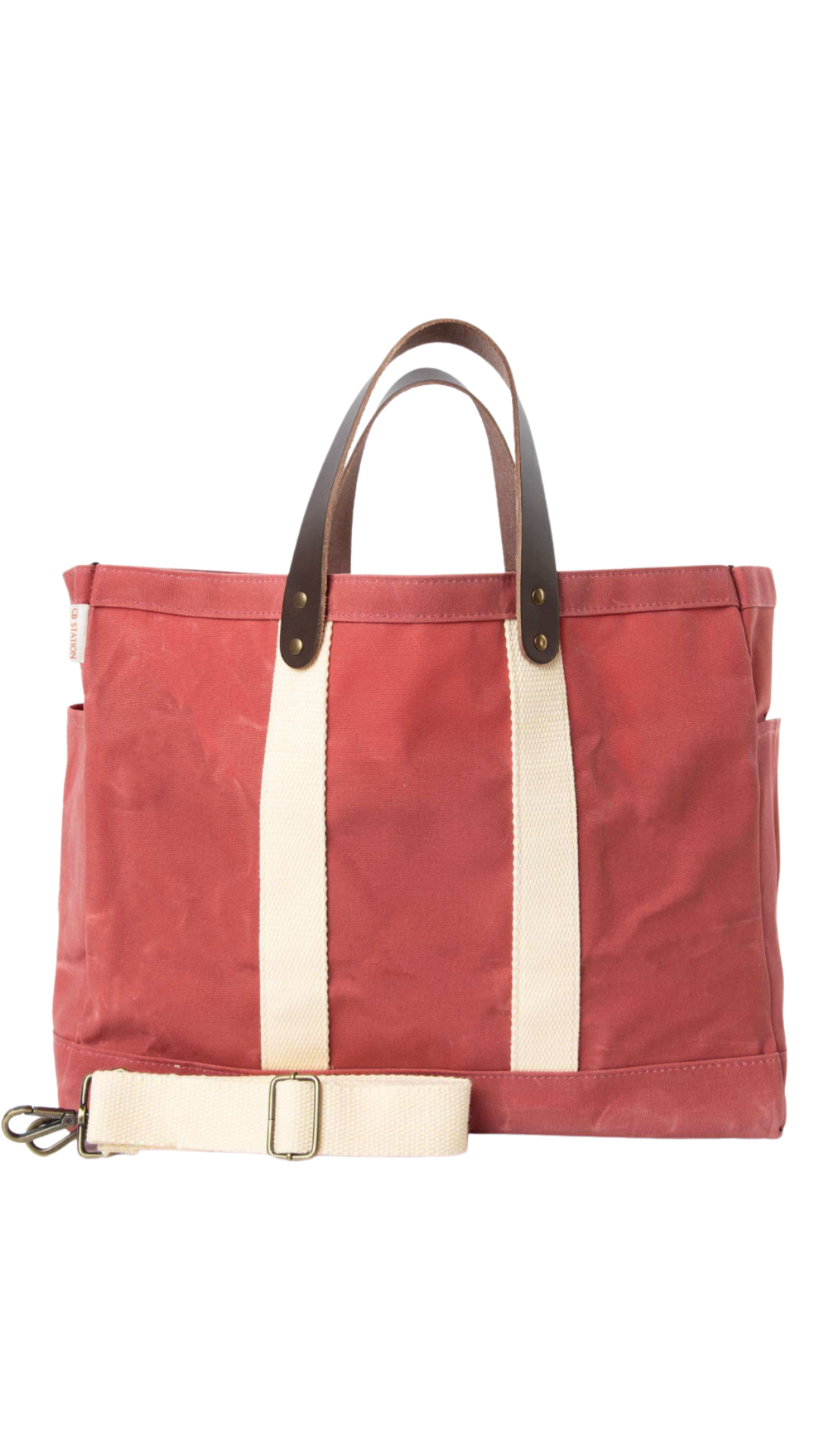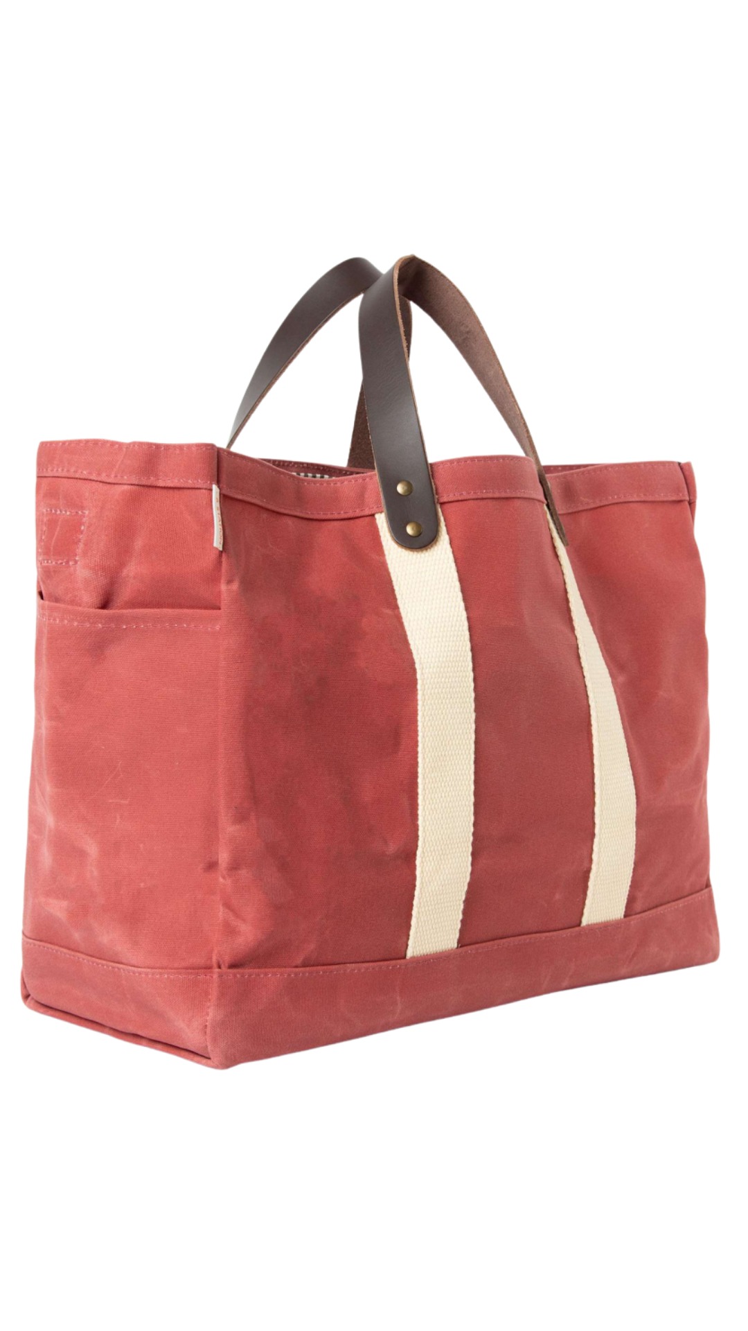 - Genuine leather handles with a 5" drop with webbed trimming and antique brass grommets.