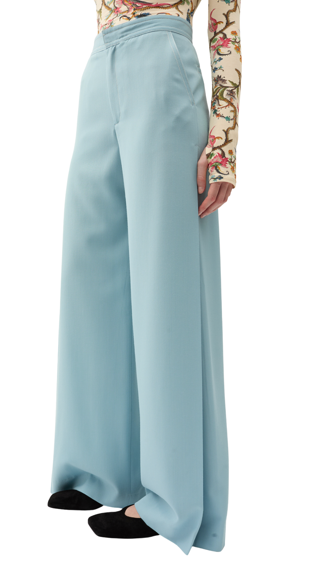 Pant in wool blend with side pleats for extra fluidity and movement.