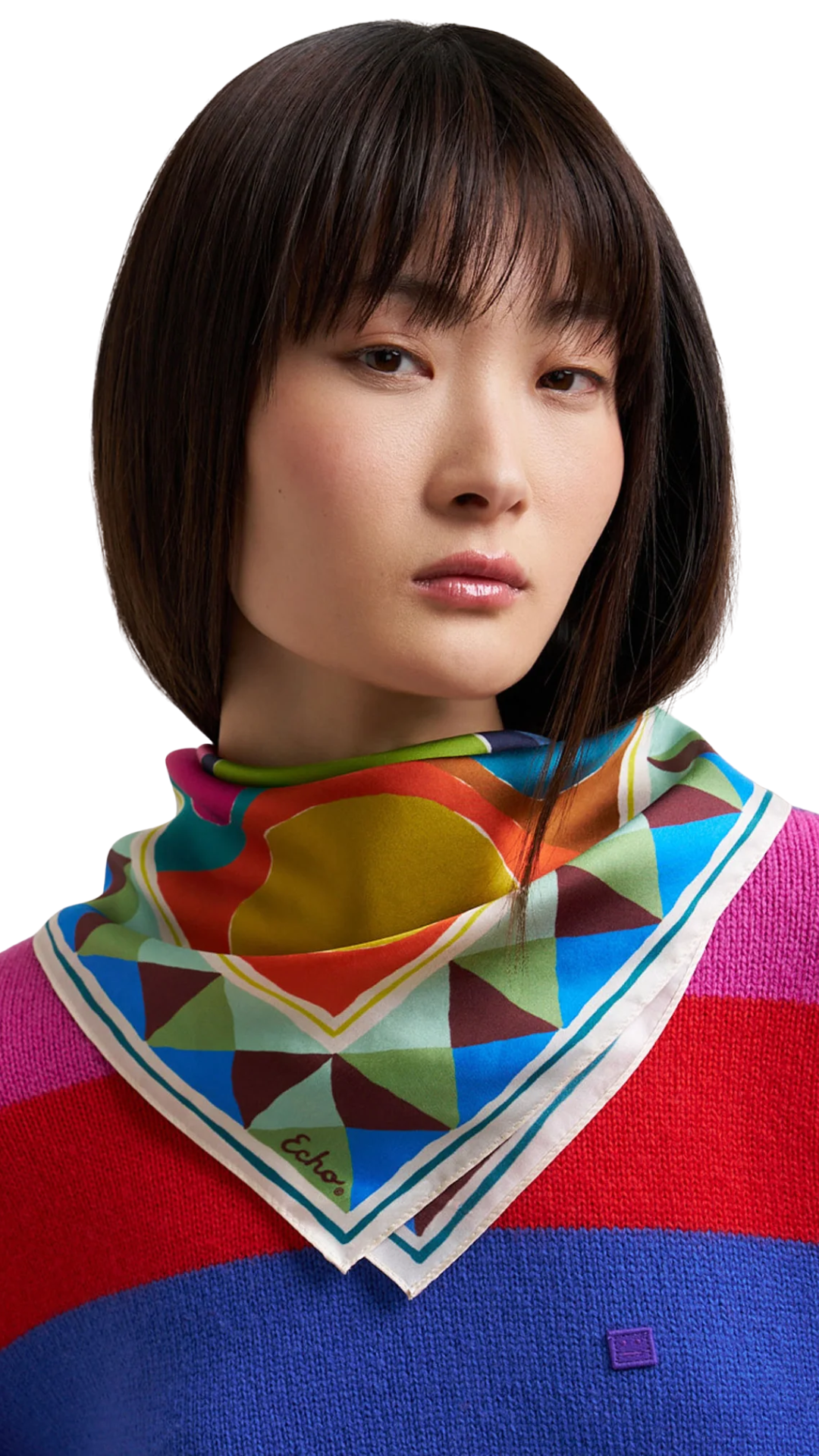 Inspired by the geometric stone carvings found on NYC’s historic buildings, this bandana reinterprets architectural details with hand-painted, imperfect linework for a painterly, organic feel. The vibrant colors pay homage to artists like Frank Stella and Sol LeWitt, blending urban heritage with modern abstract art.