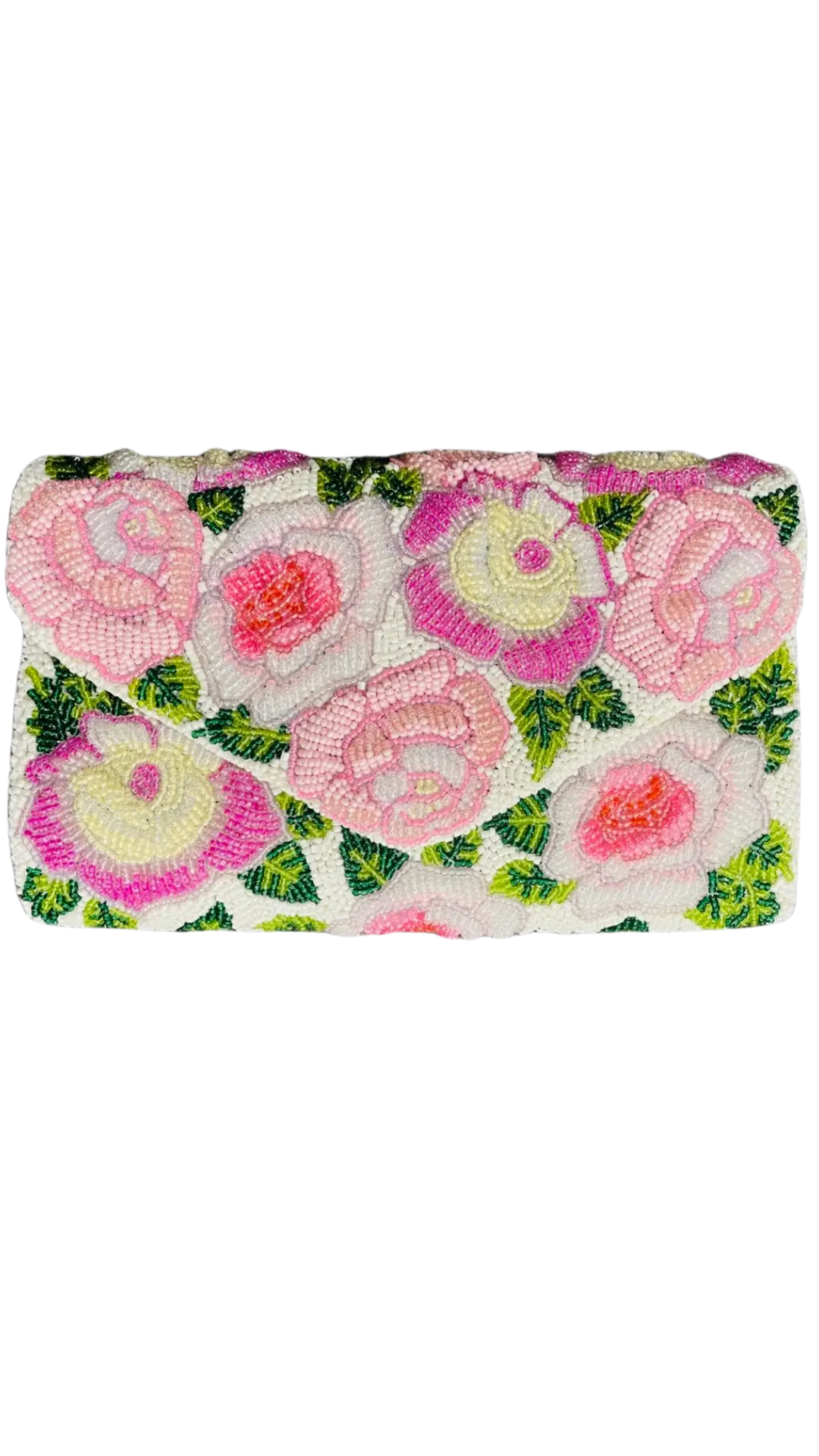 Fully Beaded Bag. This product is 100% handmade and hand-beaded. Luxurious satin lining, made with a small interior pocket for cards and other valuables.