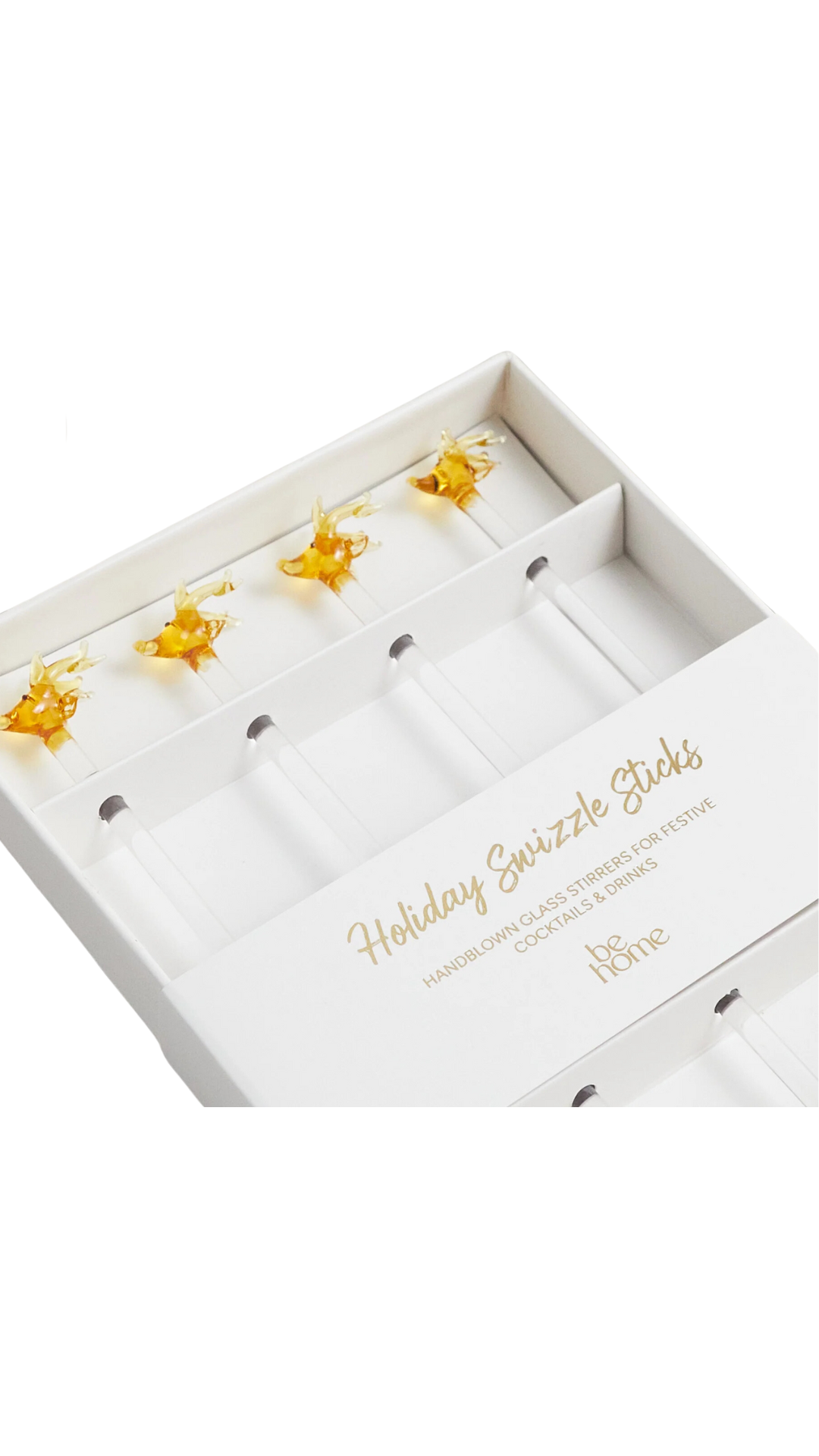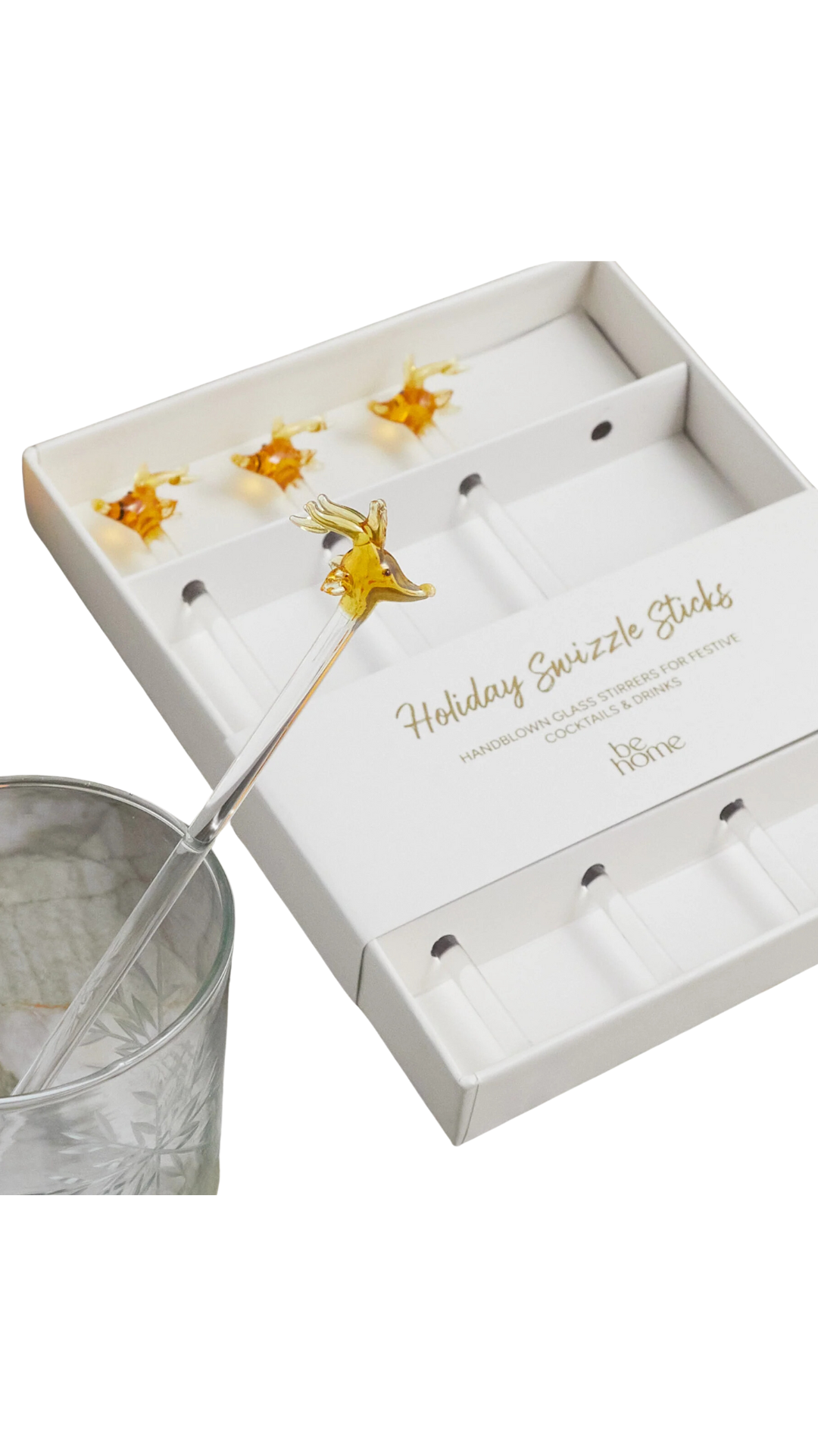 Add a touch of festive elegance to your holiday drinks with our Reindeer Glass Swizzle Sticks. This set of 4 glass swizzle sticks features intricately designed reindeer, perfect for adding a sophisticated touch to your holiday decor. Cheers to the season with these exclusive, luxurious swizzle sticks.