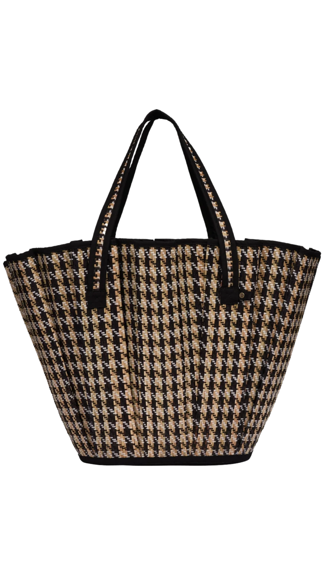 Our Midi Tropez Tote also features a fabric loop, for the addition of your Mini Capri Hat Keyring. The base includes brass feet and additional base insert.