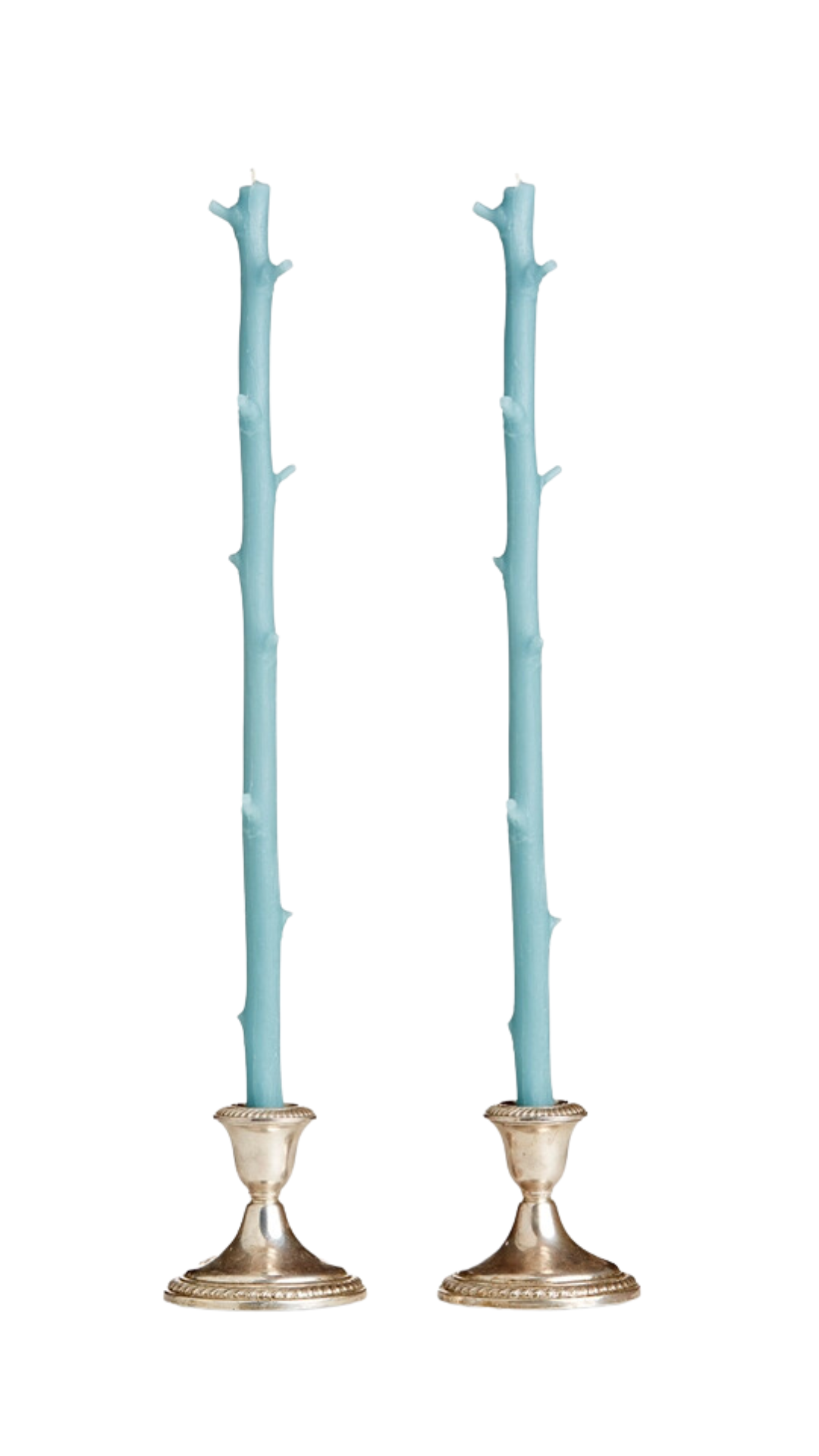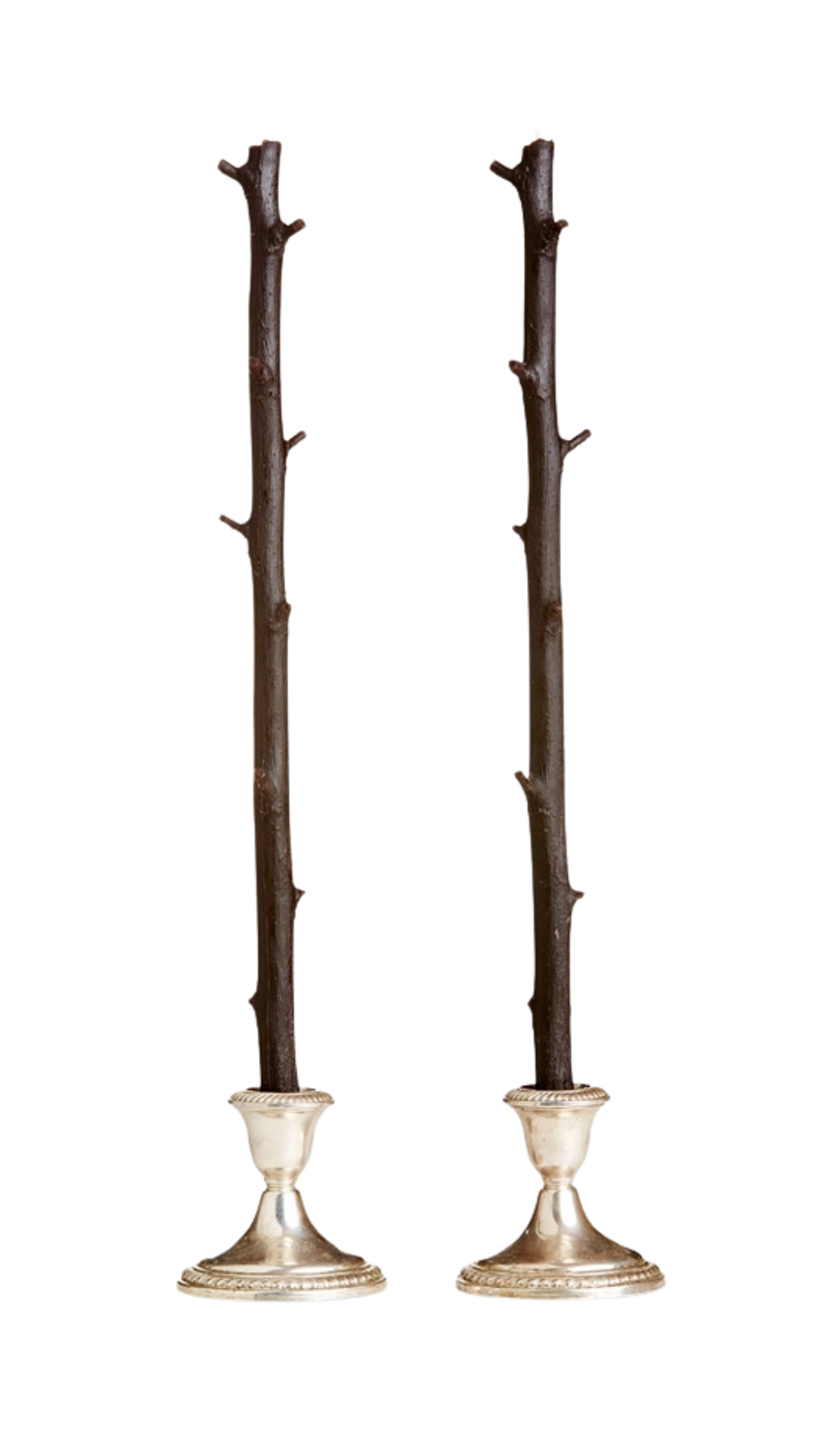 18 Inches Tall Universal Base fits from 5/8" to 1" Receptacles 17 Hour Burn Time Hickory is our most popular style (in Robin Blue and Dark Chocolate especially). It is cast from a section of developing branch with some mature nodes, but mostly new branch nodes. The bark is smooth, with primary and mature detail. This stick has less-pronounced protrusions, but more of them than any of the other styles. Hickory is loved for its size and presence, and also for its “woodsy” rustic feel. At the same time, it’s a handy curveball in modern decor.