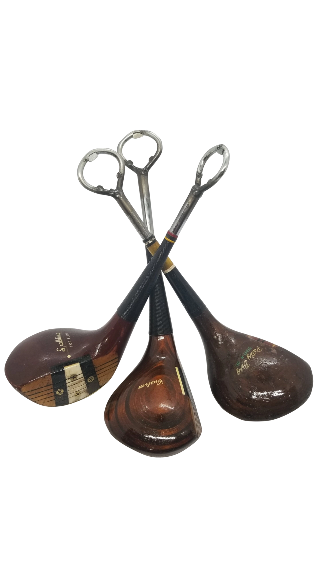 Repurposed and recycled vintage wood driver golf club - generally 50 years or older. We rescue these from thrift stores and estate sales, clean them up, chop off the shaft and weld a bottle opener onto the club. Makes a great gift for any golfer. Note: These are vintage (old) clubs and are cleaned up but not fully reconditioned. They will not appear like a shiny new club but that is part of the charm!